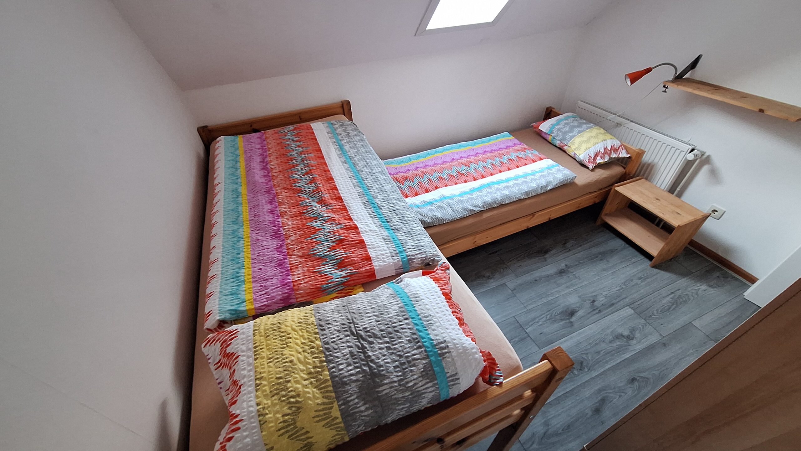 Het huis is compleet ingericht: op de begane grond een kamer, SmartTV, , WIFI, eetkamer, keuken met oven en magnetron. Op de verdieping is een ontspanningsruimte met keukenblok en aangrenzend aan een groot dakterras (ca. 20 m2) met fraai uitzicht over Westfeld. Hier kunnen gezellige momenten met vrienden en familie worden doorgebracht. De bedden zijn voorzien van dekbedden en kussens, bedlinnen is aanwezig en bij de prijs inbegrepen.